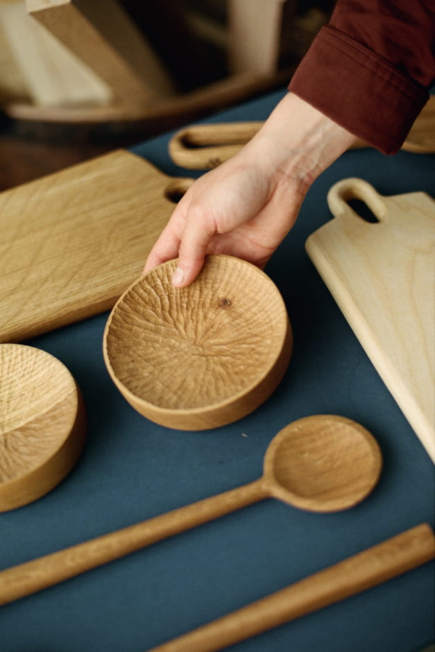 I don't really have a preference, some wood I like more than others like walnut, olive ash, oak, but also fruit trees. I really like hardwoods. When it comes to objects designed for food, I decided to only work with hardwood, rather than softwood. There are also very beautiful exotic species but I decided not to work with them.
